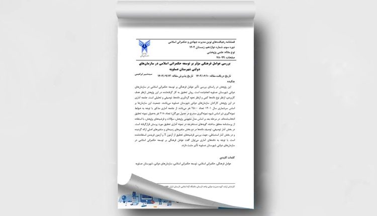 بررسی عوامل فرهنگی موثر بر توسعه حکمرانی اسلامی در سازمان های دولتی شهرستان عسلویه