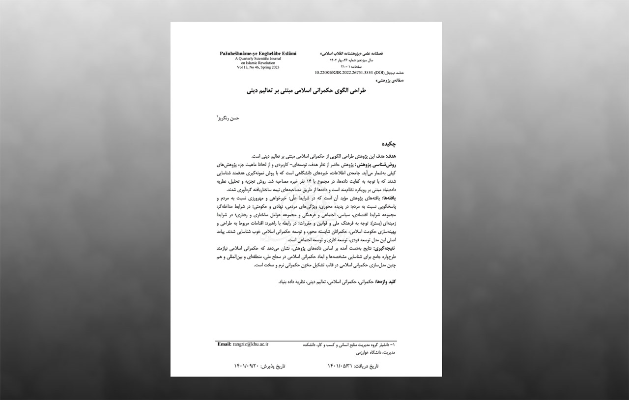 طراحی الگوی حکمرانی اسلامی مبتنی بر تعالیم دینی