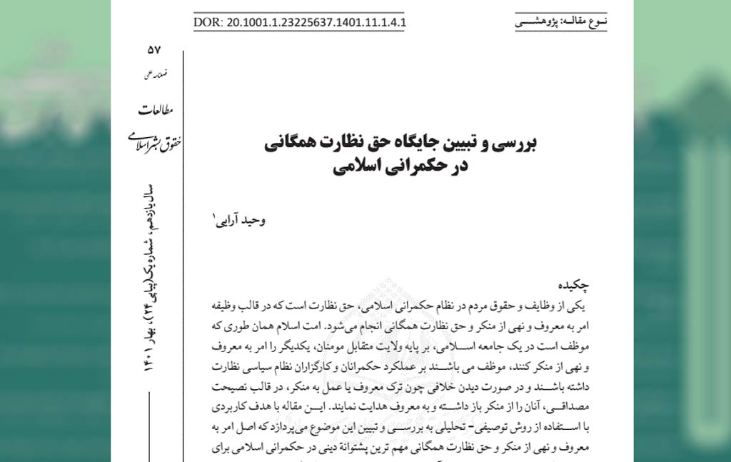 بررسی و تبیین جایگاه حق نظارت همگانی در حکمرانی اسلامی