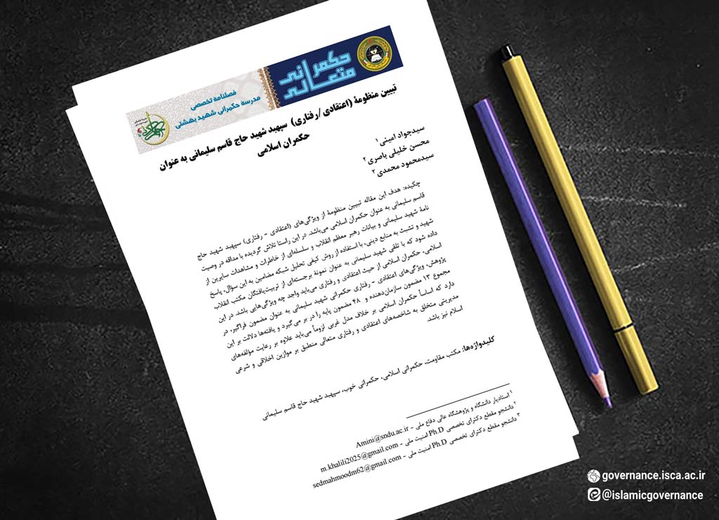 تبیین منظومۀ (اعتقادی/رفتاری) سپهبد شهید حاج قاسم سلیمانی به عنوان حکمران اسلامی