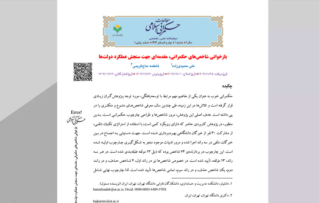 دوفصلنامه علمی تخصصی مطالعات حکمرانی اسلامی، دوره ۱، شماره ۱، فروردین ۱۴۰۴