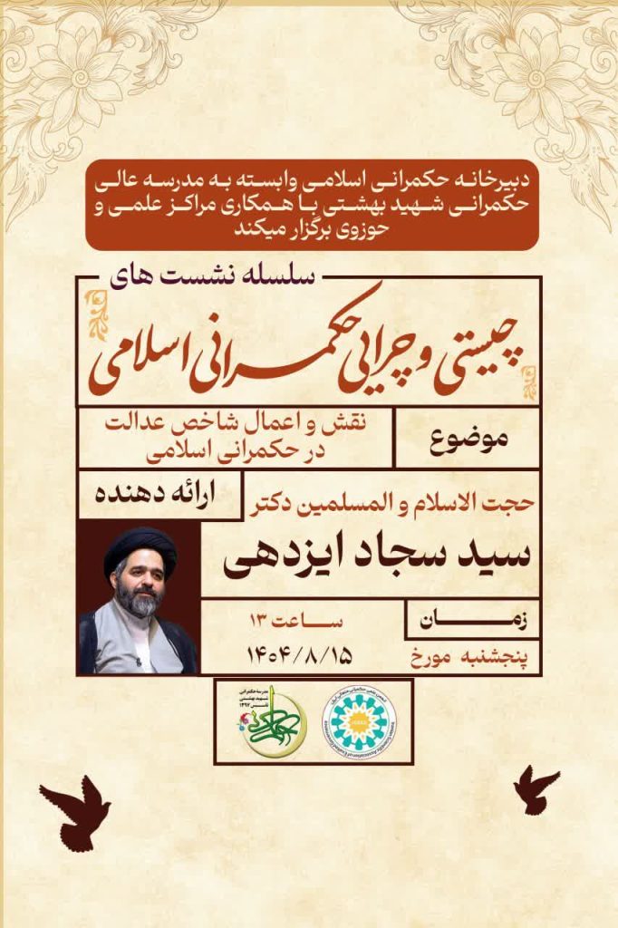 🔍موضوع نشست: نقش و اعمال شاخص عدالت در حکمرانی اسلامی