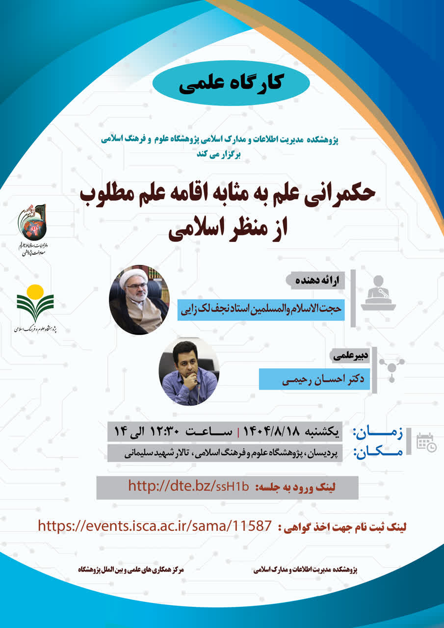 🔰پژوهشکده مدیریت اطلاعات و مدارک اسلامی پژوهشگاه علوم و فرهنگ اسلامی برگزار می کند؛