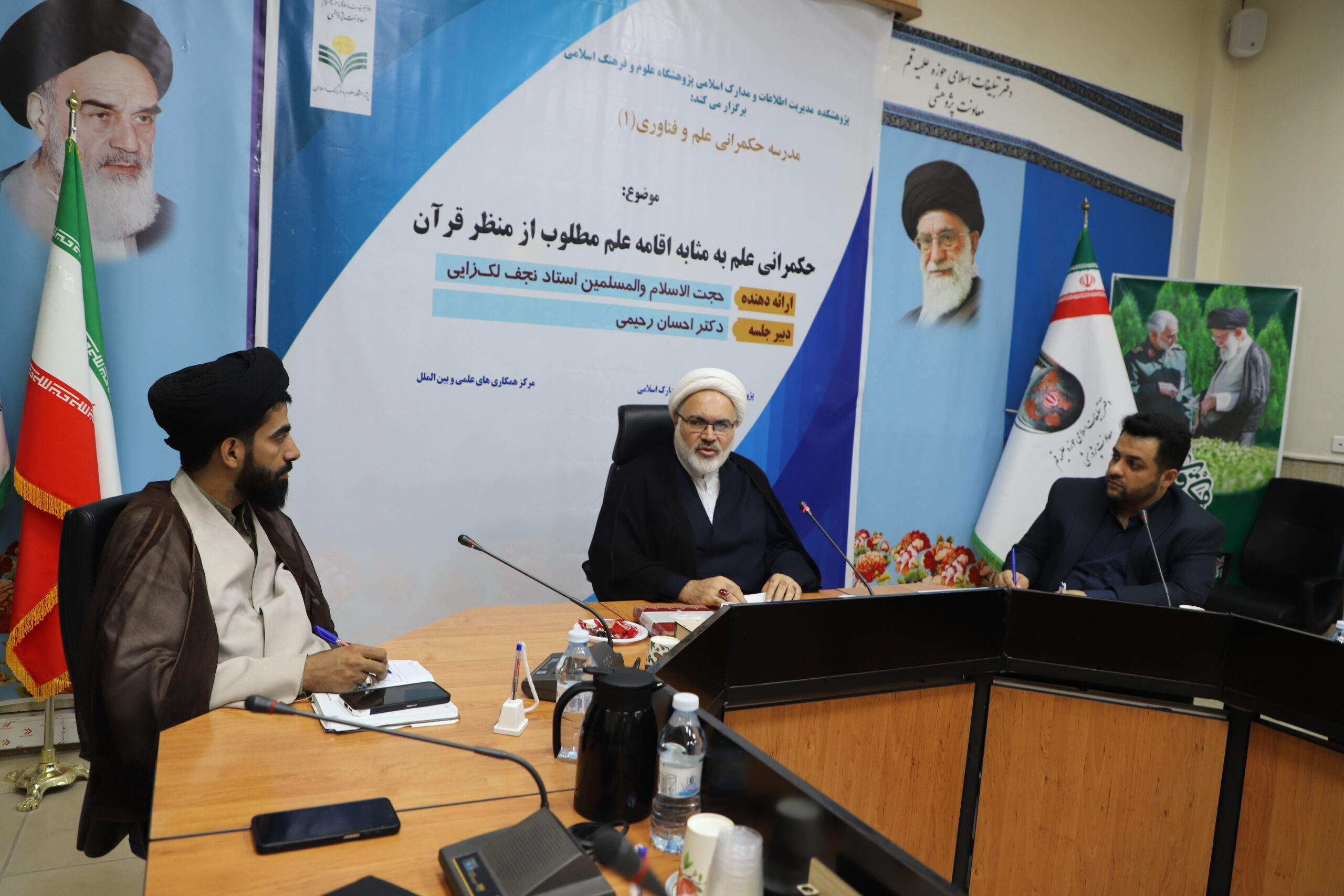 حجت الاسلام المسلمین استاد نجف لکزایی معاون پژوهشی دفتر تبلیغات اسلامی، در این آیین که در سالن شهید سلیمانی پژوهشگاه علوم و فرهنگ اسلامی برگزار شد در سخنانی، حکمرانی علم را مستلزم «اقامه علم مطلوب» از منظر قرآن کریم دانست و اظهار کرد: پیشرفت و اقتدار تمدنی بدون مدیریت صحیح بر مسیر علم میسر نخواهد بود.