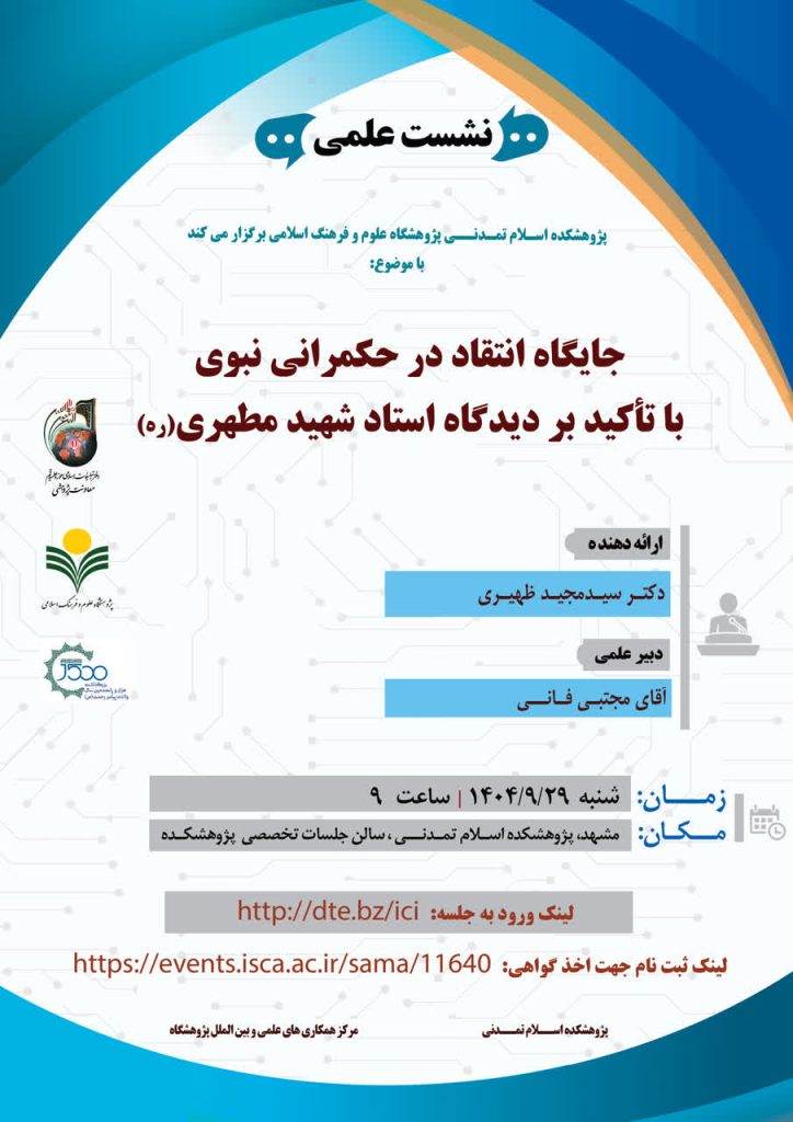 🏢 مکان: مشهد- پژوهشکده اسلام تمدنی