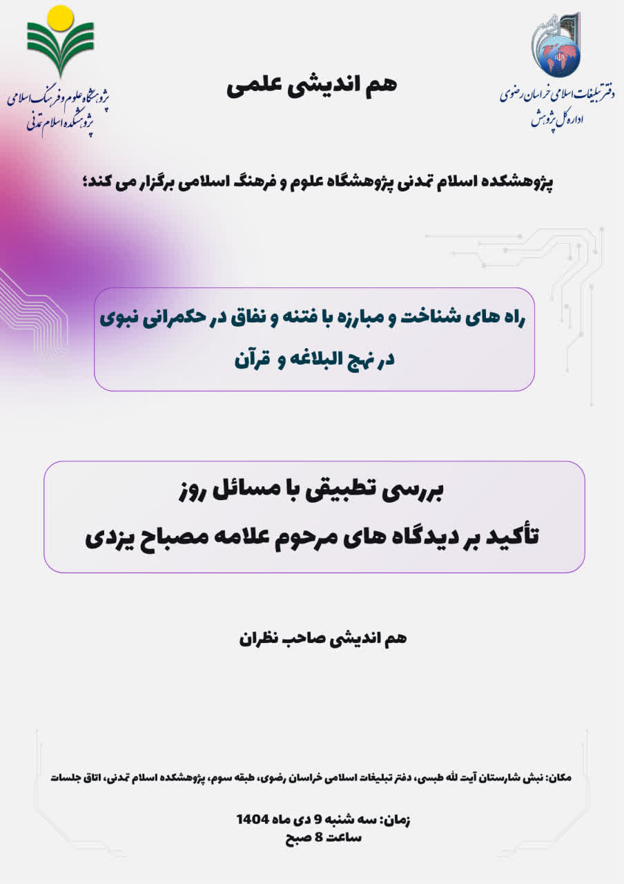 🏢 مکان: مشهد- پژوهشکده اسلام تمدنی